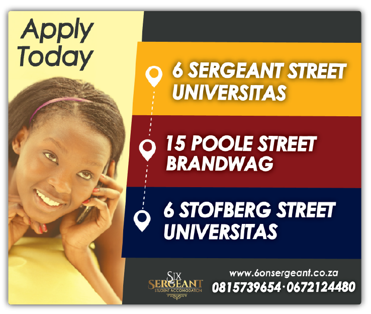 The Universitas Sergeant is our most luxurious student accommodation ever, with 90% luxury rooms that are fully furnished. There is a lot of luxuriousness and benefits to offer, Universitas Sergeant is the best way to live as a student. Based in Bloemfontein, and just a walking distance from residential place to the University Of the Free State.